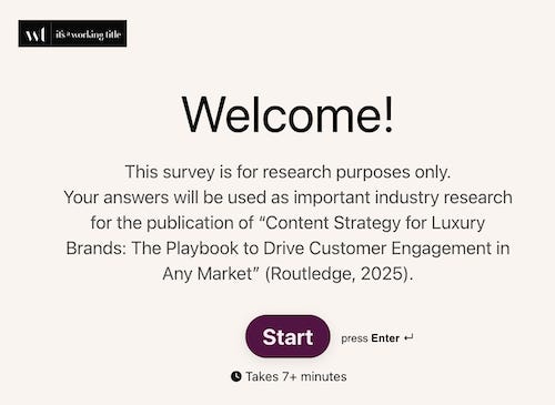 The FSW team invites luxury industry readers to participate in a survey as part of the team's ongoing book research.